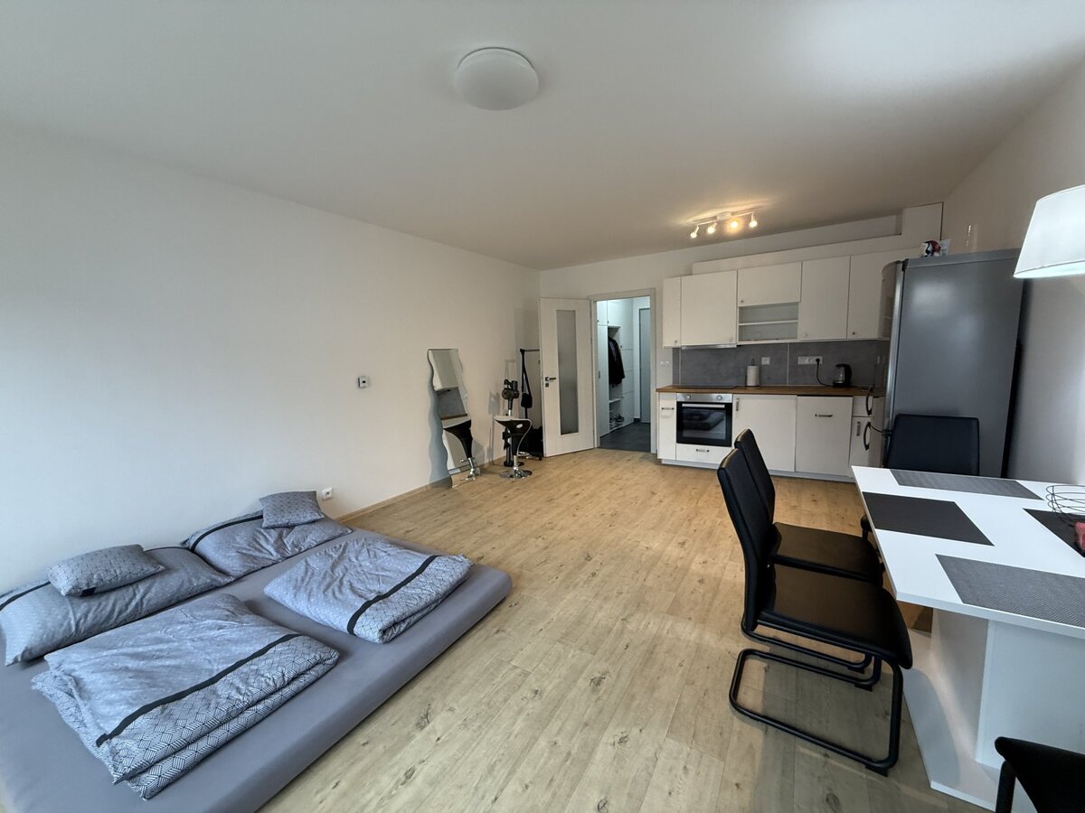 Moderní byt 1+kk v novostavbě (39 m²) – podlahové vytápění, žaluzie, sklep