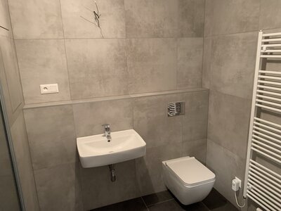 kvalitní obklady v nadčasovém designu a dostatek místa pro pračku